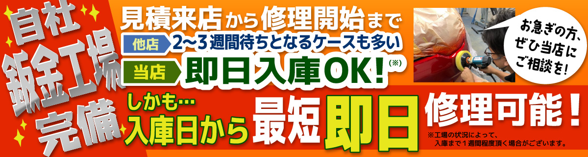バンパー補修以外でも、修理完了まで2日~3日でお車のお引き渡しが可能です。