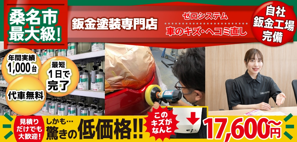 桑名で格安板金1.7万~!桑名で年1千台の修理実績!